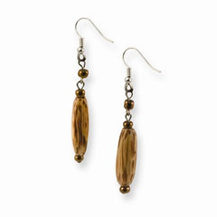 Silver-tone Palm Wood Acrylic Bead 2.25in Dangle Earrings