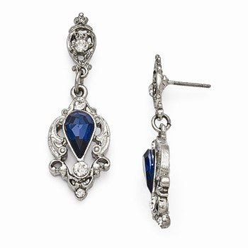Silver-tone Pear Shaped Blue Glass Post Earrings