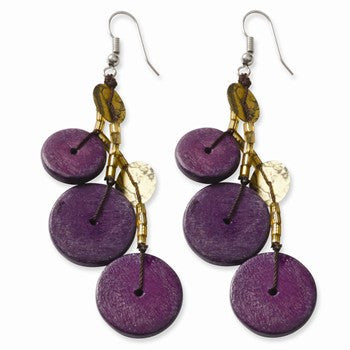 Silver-tone Purple Hamba Wood, Acrylic Bead Sequin 3.25in Earrings