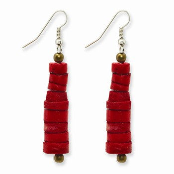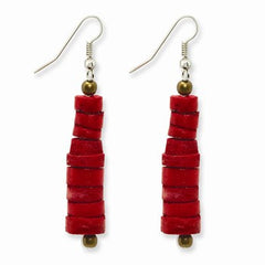 Silver-tone Red Coconut Acrylic Bead Graduated Bead Earrings