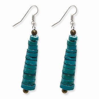 Silver-tone Teal Coconut Acrylic Bead Graduated Bead Earrings