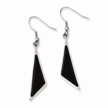 Stainle Steel Black Glass Polished Fancy Dangle Earrings