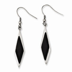 Stainle Steel Black Glass Polished Fancy Dangle Earrings