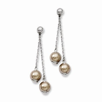 Stainle Steel Champagne Simulated Pearl Post Dangle Earrings