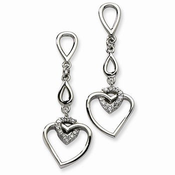 Stainle Steel Heart w/CZ Heart Post Dangle Earrings