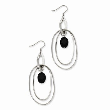Stainle Steel Multiple Circles with Black Glass Dangle Earrings