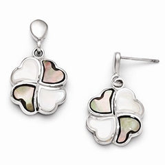 Stainle Steel Polished Black/White Mother of Pearl Post Earrings