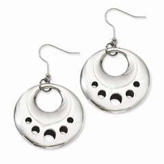 Stainle Steel Polished Circle Cut Out Dangle Earrings