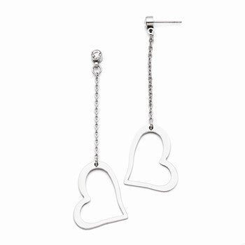 Stainle Steel Polished Heart and Crystal Post Dangle Earrings