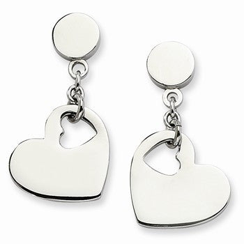 Stainle Steel Polished Heart Post Dangle Earrings