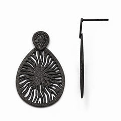 Stainle Steel Polished Laser Cut Black IP-plated Post Dangle Earrings