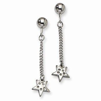 Stainle Steel Polished Star w/ CZs Post Dangle Earrings