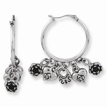 Stainle Steel Rose, Lock Heart Dangle Earrings