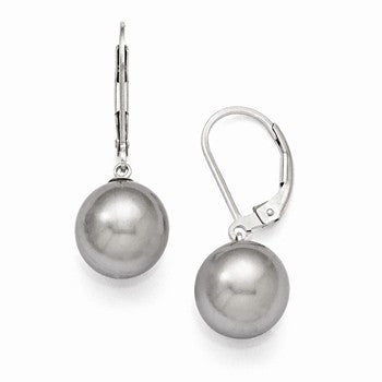 Sterling Silver 10-11mm Round Grey Shell Pearl Leverback Earring