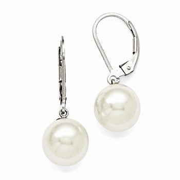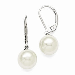 Sterling Silver 10-11mm Round White Shell Pearl Leverback Earring