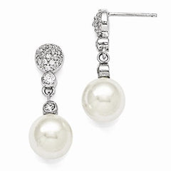 Sterling Silver 10-11mm White Shell Pearl CZ Dangle Earrings
