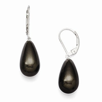Sterling Silver 10x18mm Teardrop Black Shell Pearl Earrings