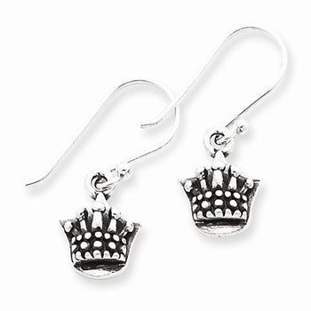 Sterling Silver Antique Crown Dangle Earrings