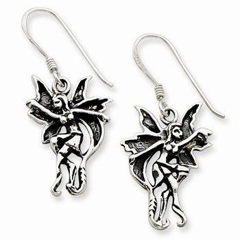 Sterling Silver Antiqued and Polished Dancing Dangle Earrings