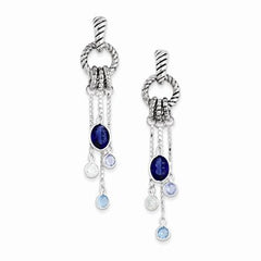 Sterling Silver Antiqued Blue CZ Dangle Post Earrings
