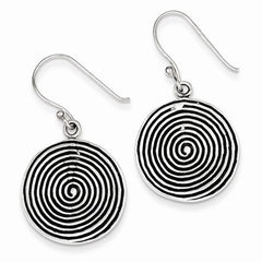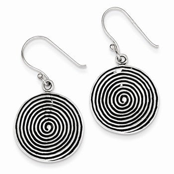 Sterling Silver Antiqued, Polished Textured Circle Dangle Earrings