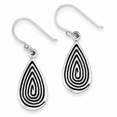 Sterling Silver Antiqued Polished Textured Teardrop Dangle Earrings