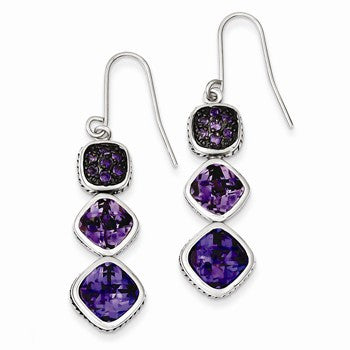 Sterling Silver Antiqued Purple CZ Dangle Earrings