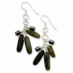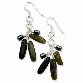 Sterling Silver Black Agate, Hematite Labradorite Dangle Earrings