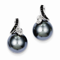 Sterling Silver black and clear CZ Gray Shell Pearl Earrings