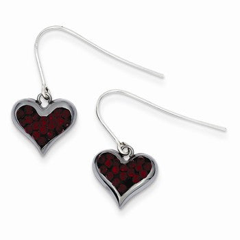 Sterling Silver Black Ceramic Red Swarovski Elements Heart Earrings