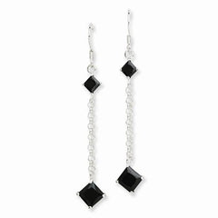 Sterling Silver Black CZ w/Chain Dangle Earrings