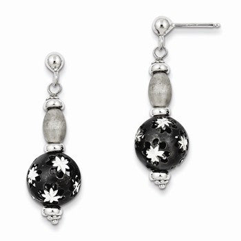 Sterling Silver Black Rhodium and Diamond-cut Bead Post Dangle Earrings