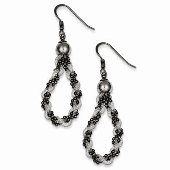 Sterling Silver Black Rhodium Mesh and Beaded Dangle Earrings