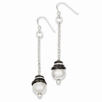 Sterling Silver Black Rhodium Polished Textured Dangle Earrings