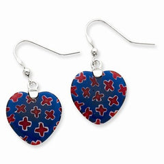 Sterling Silver Blue Red Glass Polished Heart Dangle Earrings