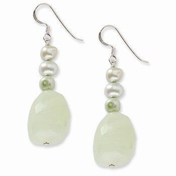 Sterling Silver Chalcedony Lt Green Freshwater Cultured Pearl Earrings