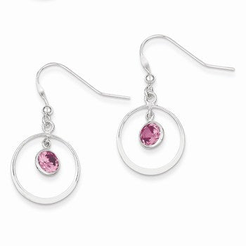 Sterling Silver Circle Dangle Pink CZ Earrings