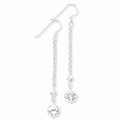 Sterling Silver Clear CZ w/Chain Dangle Earrings