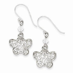 Sterling Silver CZ and Filigree Butterfly Dangle Earrings