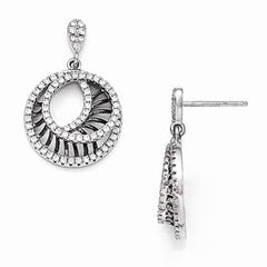Sterling Silver CZ Black Rhodium Polished Circle Earrings