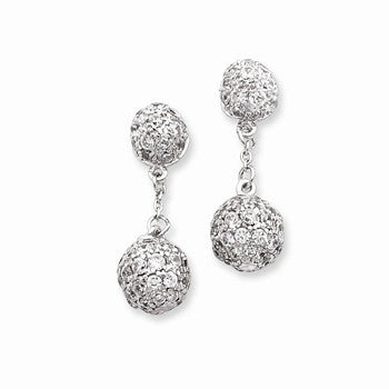 Sterling Silver CZ Dangle Ball Post Earrings