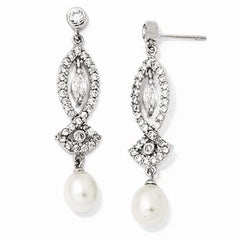 Sterling Silver CZ Freshwater Cultured Pearl Dangle Post Earrings