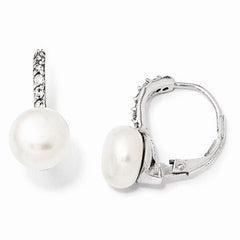 Sterling Silver CZ Freshwater Cultured Pearl Leverback Earrings