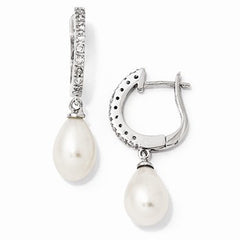 Sterling Silver CZ Freshwater Pearl Leverback Dangle Earrings