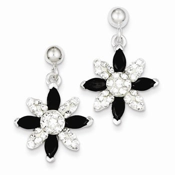 Sterling Silver/CZ/Stellux Crystal Flower Post Dangle Earrings