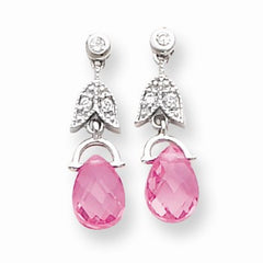 Sterling Silver Dark Pink CZ Dangle Earrings