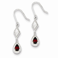 Sterling Silver Dark Red CZ Dangle Earrings