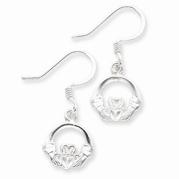 Sterling Silver Diamond-cut Claddagh Earrings