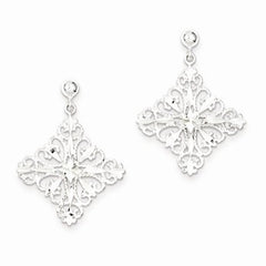 Sterling Silver Diamond-cut Square Post Dangle Earrings