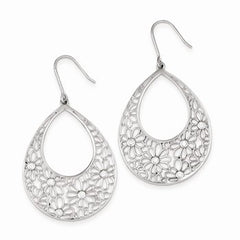 Sterling Silver Flower Cut Out w/ CZ Teardrop Dangle Earrings